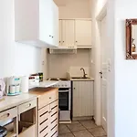 Uma área de kitchenette equipada é fornecida. Está localizado a 10 minutos do aeroporto de Miconos.